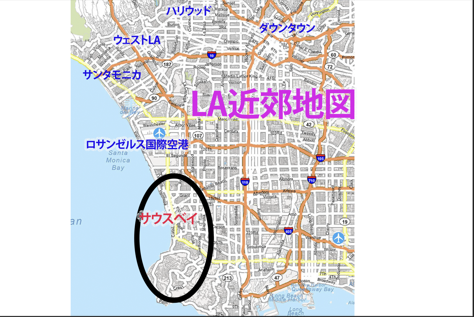 ロサンゼルス近郊地図、サウスベイエリア もっと詳しく